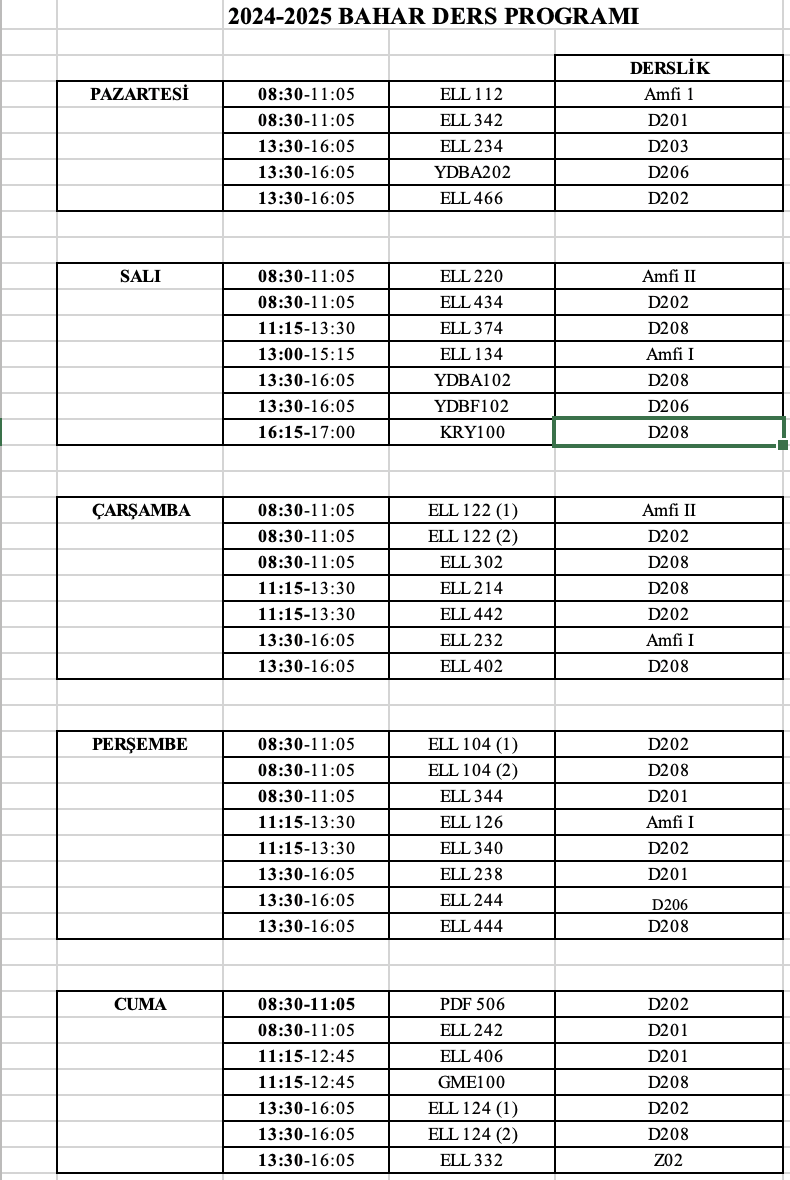 • 2024-2025 BAHAR DERS PROGRAMI