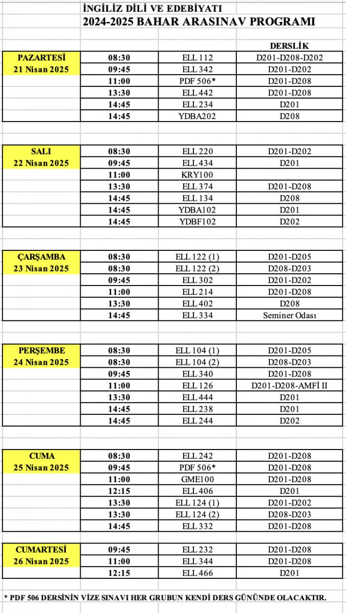 2025-2026 BAHAR DÖNEMİ DERS PROGRAMI
